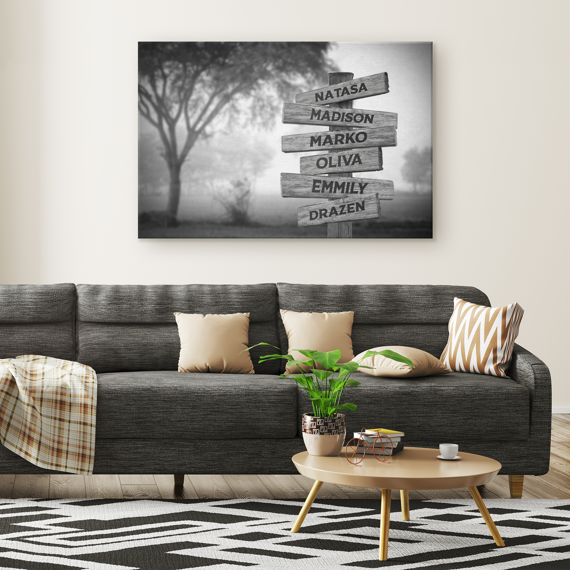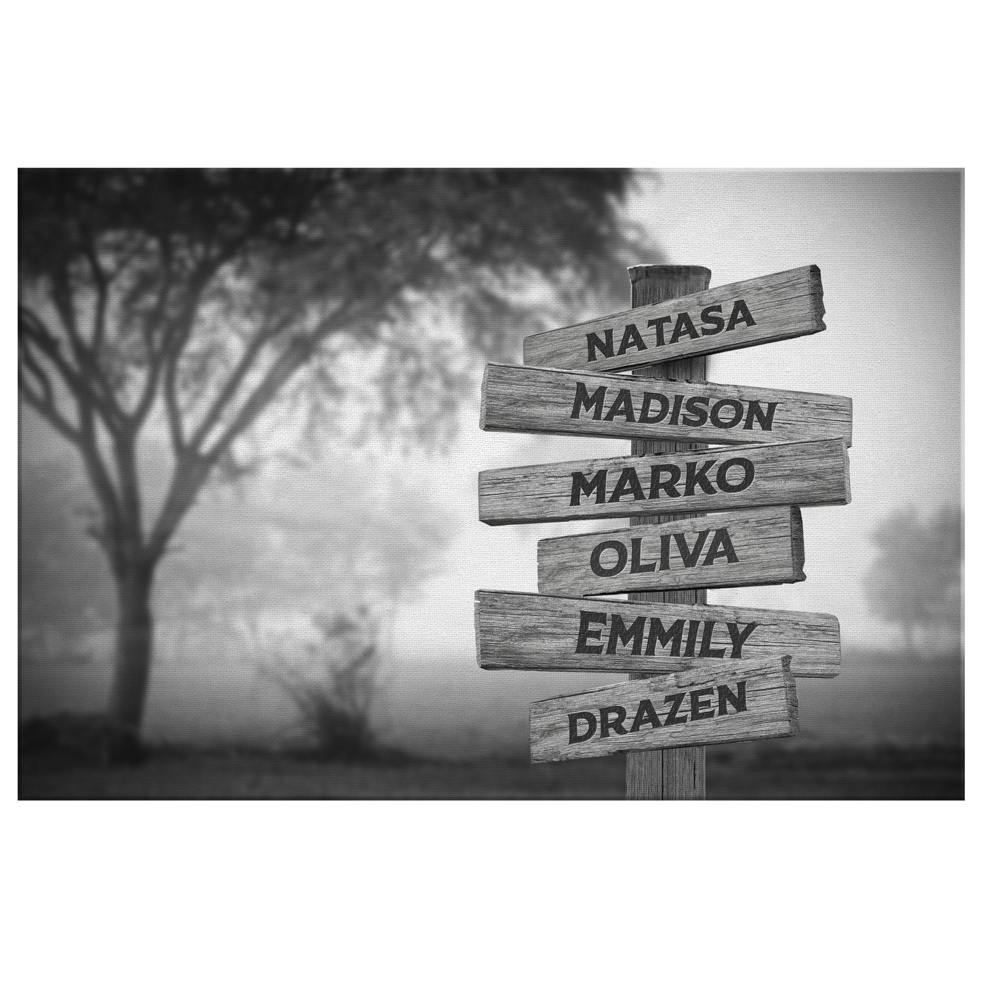 Personalized Multi Names Family Canvas Wall Art - Woods