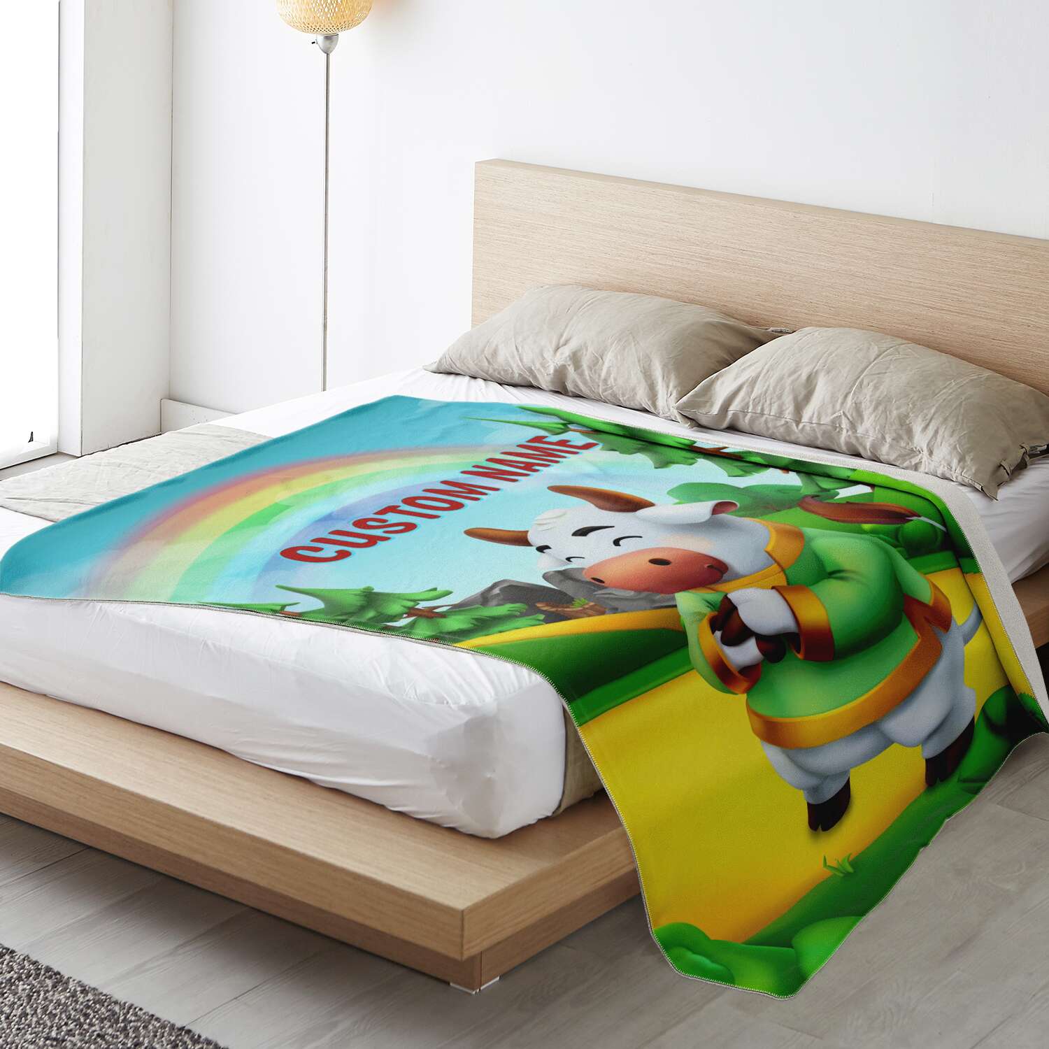 Personalized Name Bull Animal Blanket for Kids, Custom Name Blanket for Boys & Girls