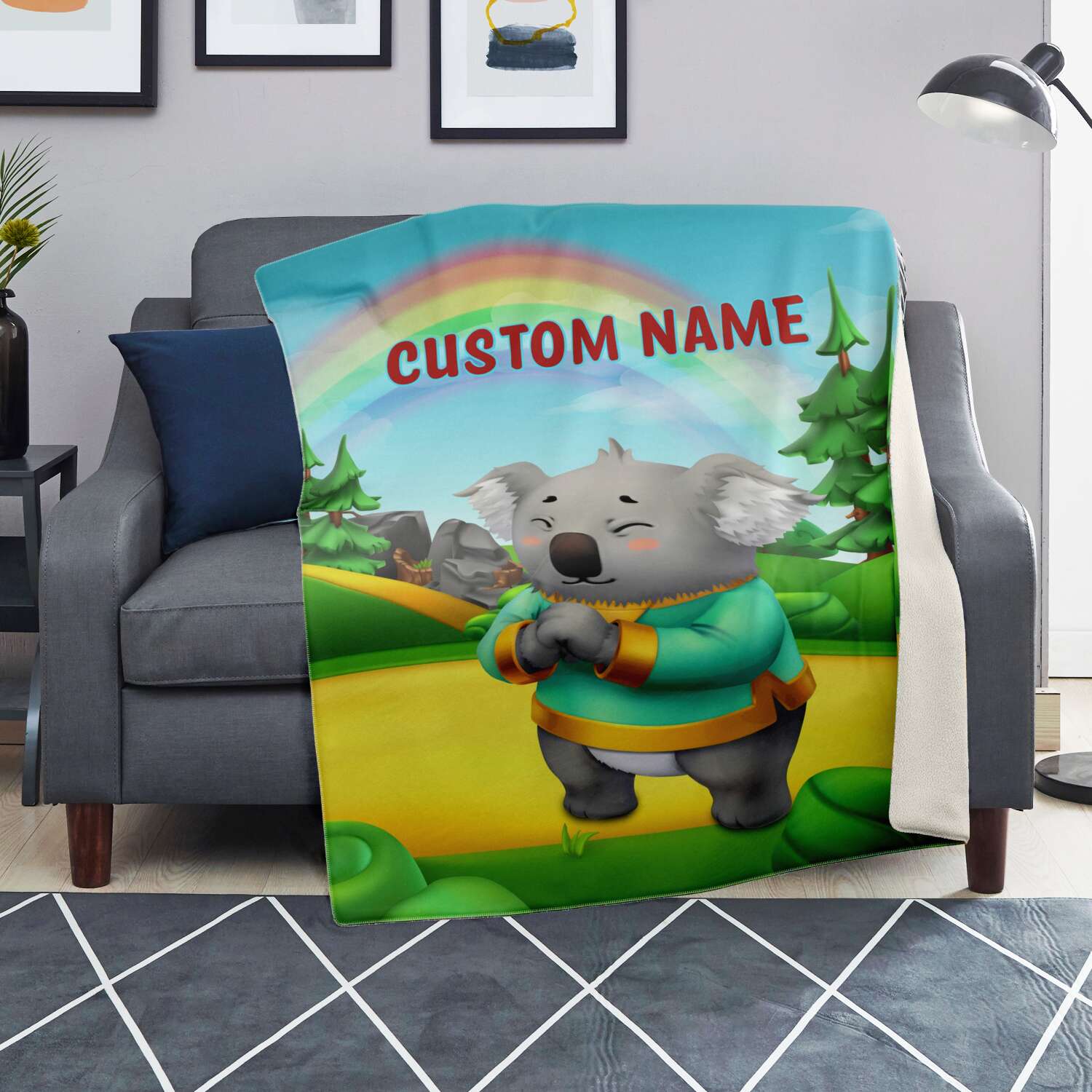 Personalized Name Koala, Animal Blanket for Kids, Custom Name Blanket for Boys & Girls