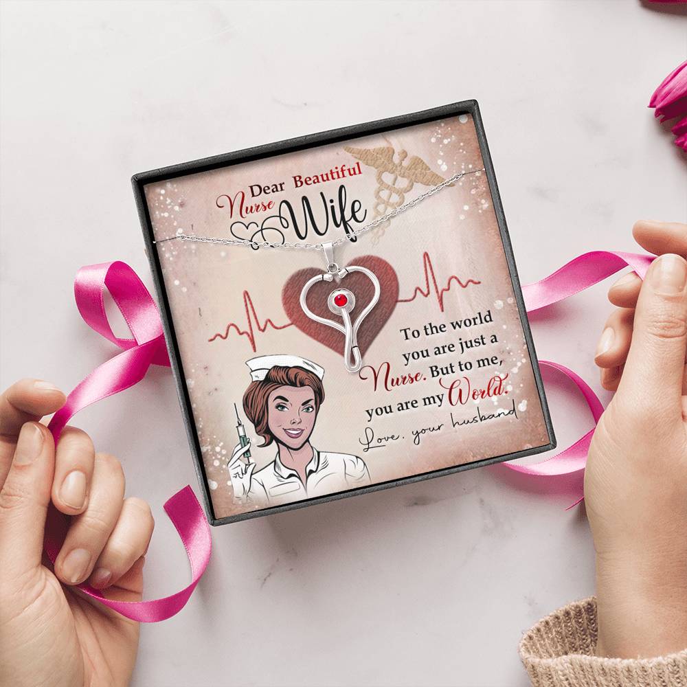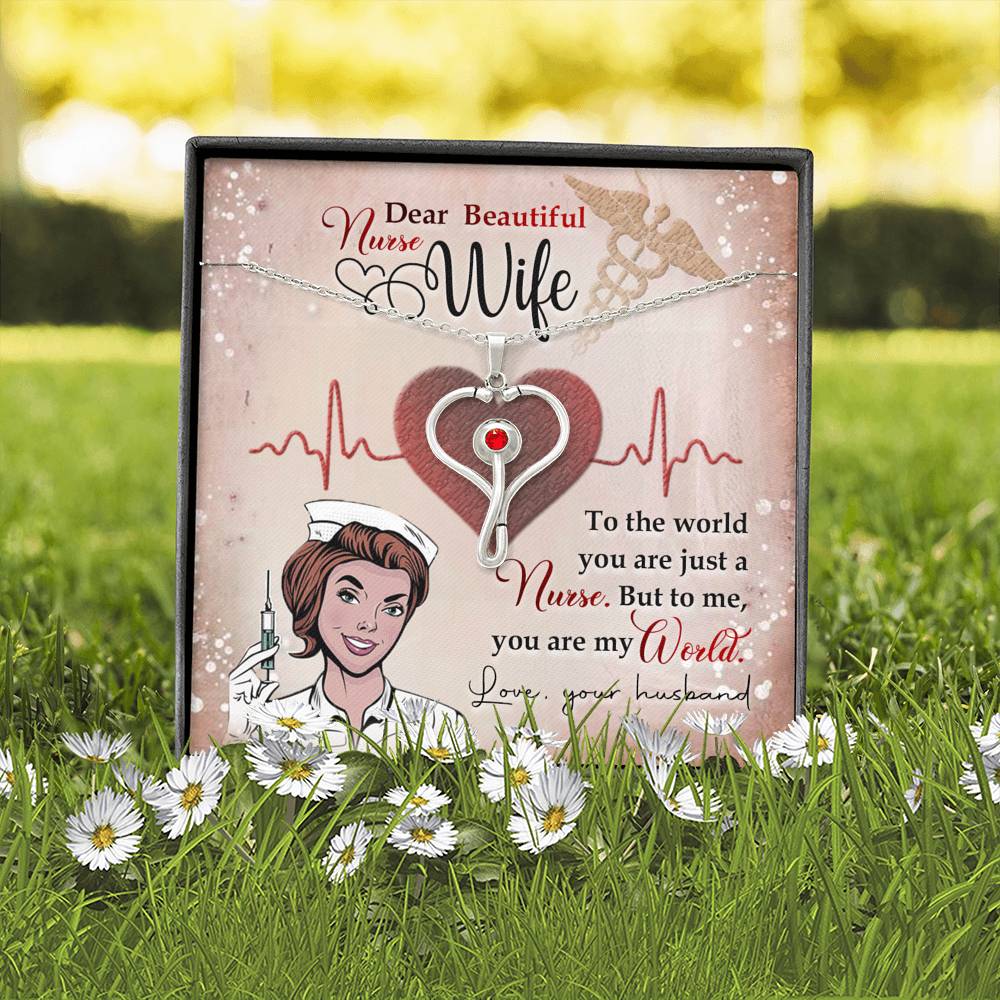Our Health Care Workers dedicate their lives to our well being. They are the healers, the care-givers, and the life savers of the world. We can celebrate and recognize these heroes and their sacrifices with this beautiful stethoscope necklace. This piece makes a unique and thoughtful gift for nurses, doctors, and anybody in the medical field! Stainless Steel pendant with oxidized details Embellished with Red Swarovski® Crystal Pendant size 29.13mm x 20.47mm Adjustable 18"-22" Oblate Cable Chain with lobster clasp.