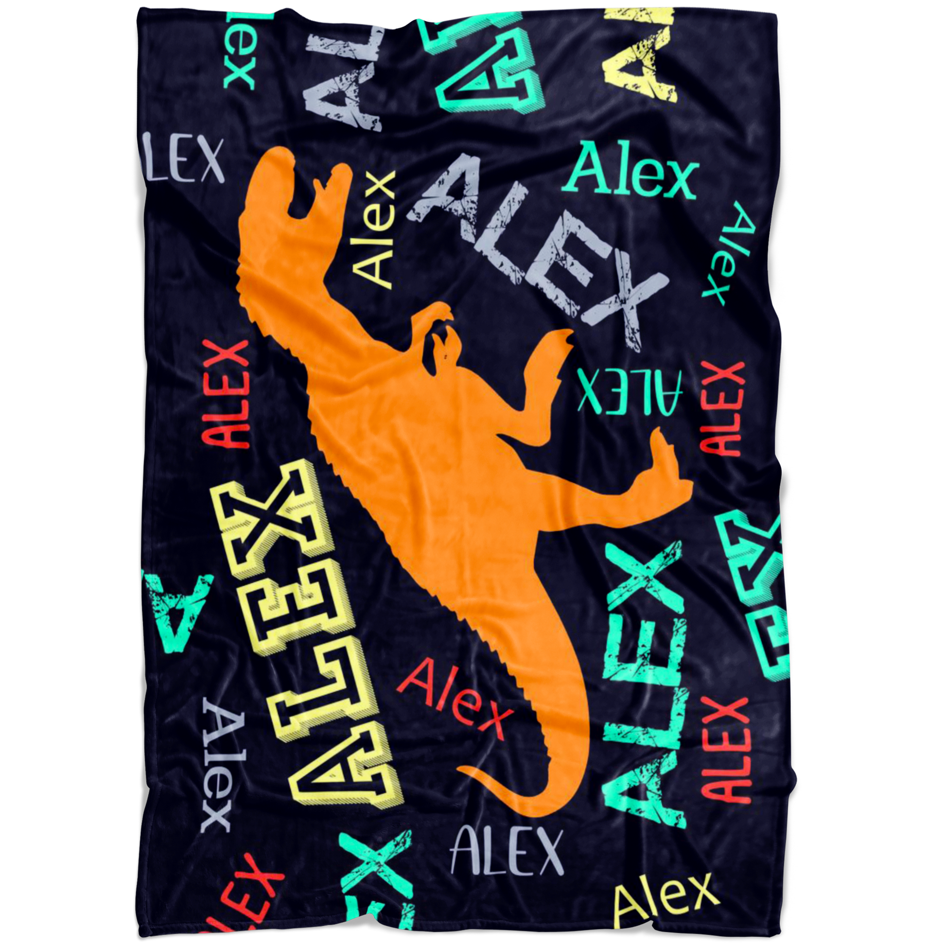 Dinosaurs T-Rex Personalized Name Blanket for Boys, Kids - Alex