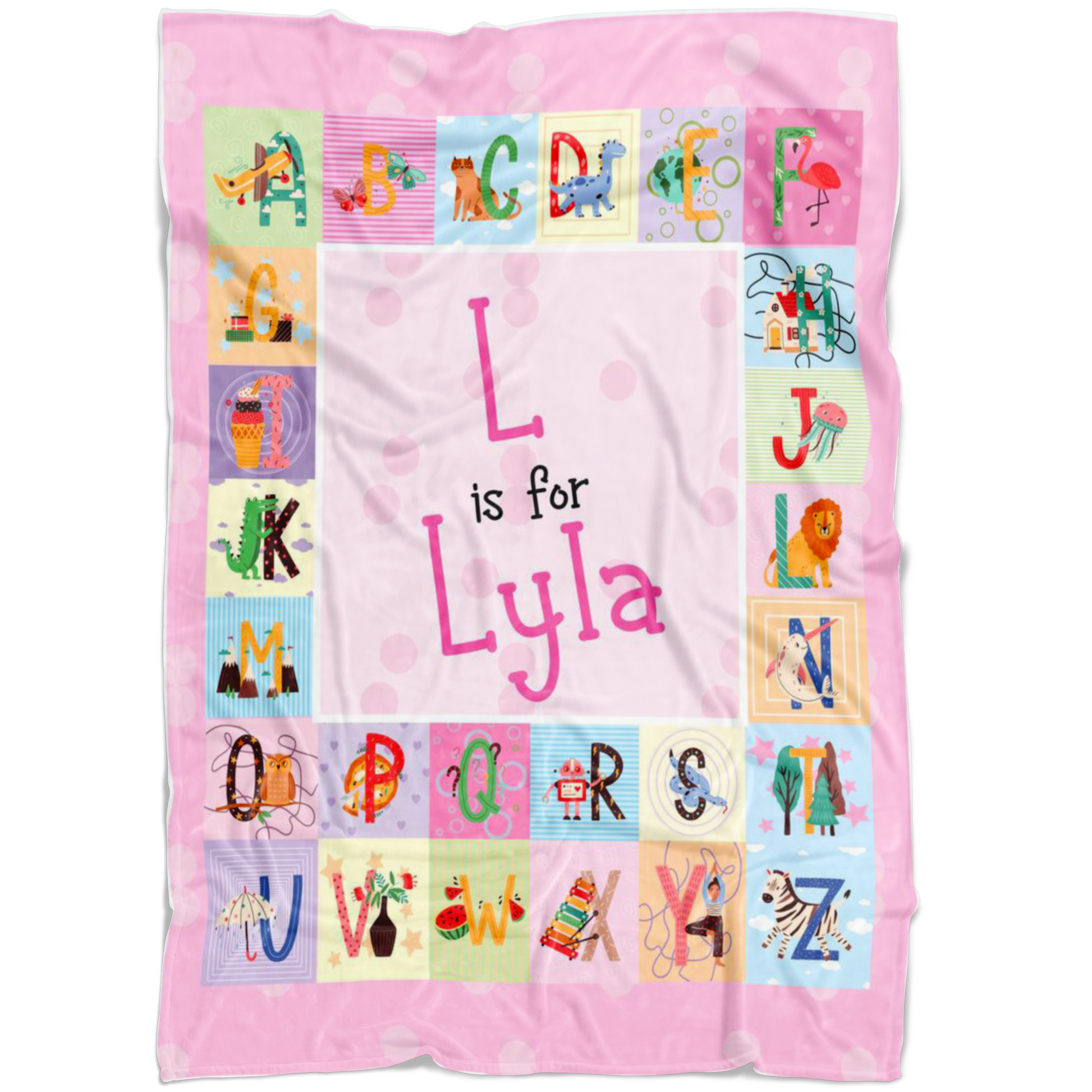 Personalized Name ABC Blanket for Babies & Girls - L for Lyla