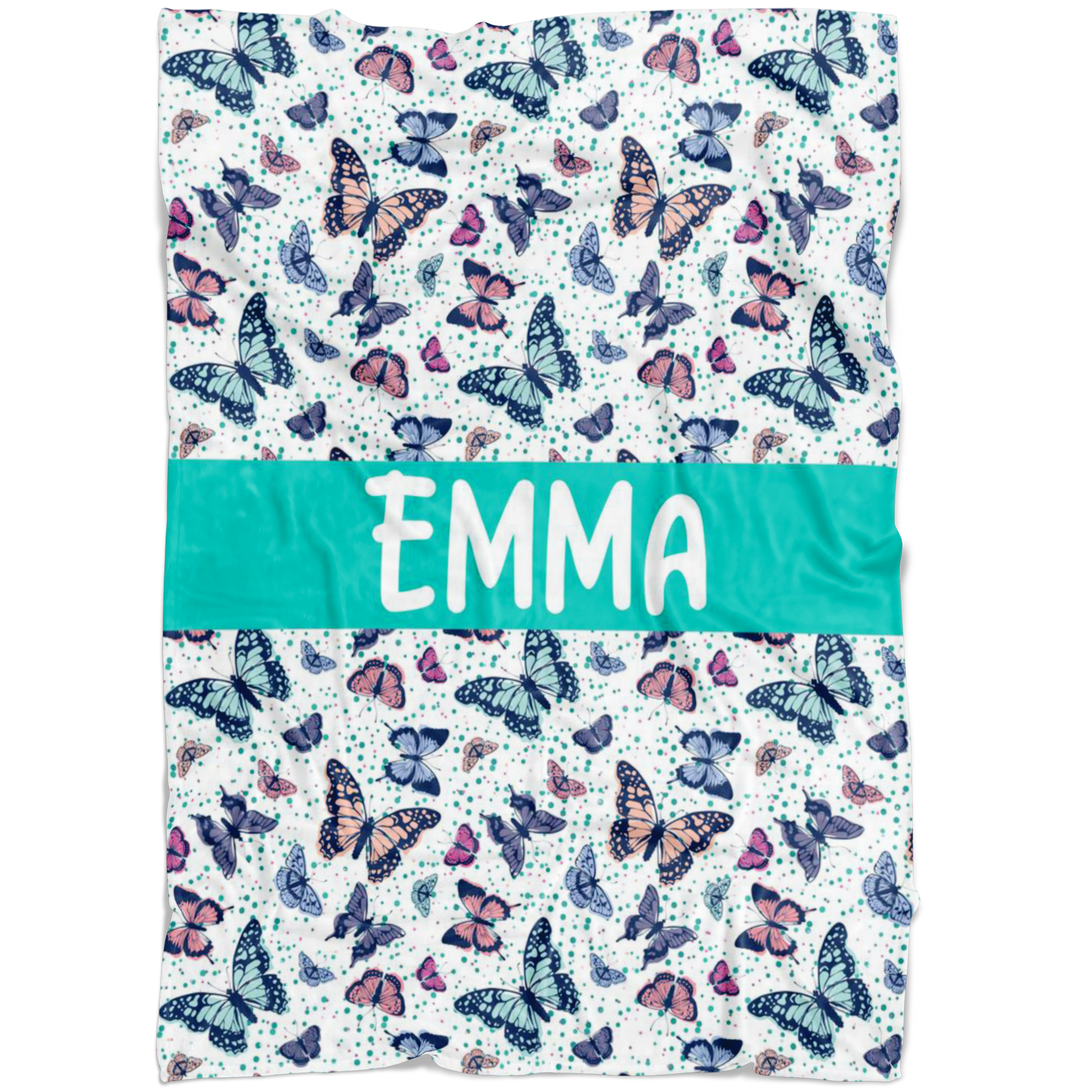 Personalized Name Butterflies Blanket for Girls & Boys, Children Blanket - Emma