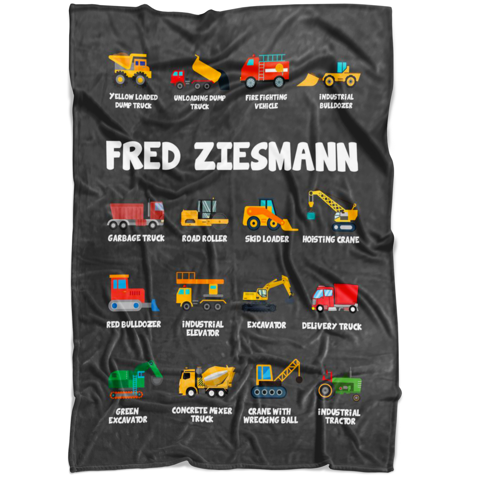 Personalized Name Construction Machines Boys & Girls Blanket - Fred Ziesmann