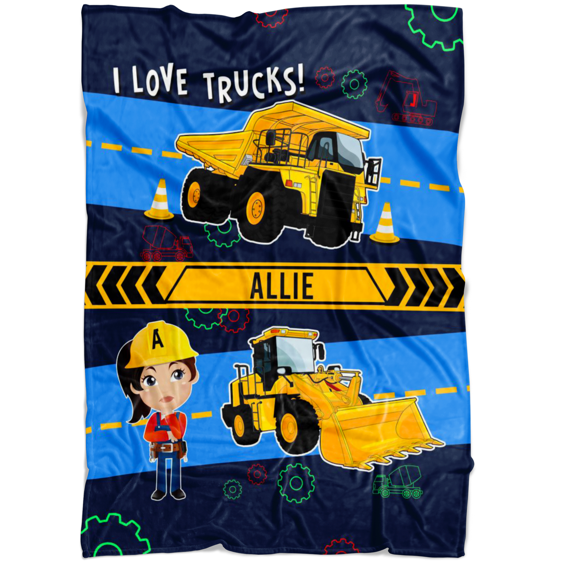 Personalized Name I Love Trucks Blanket for Boys & Girls with Character Personalization - Allie