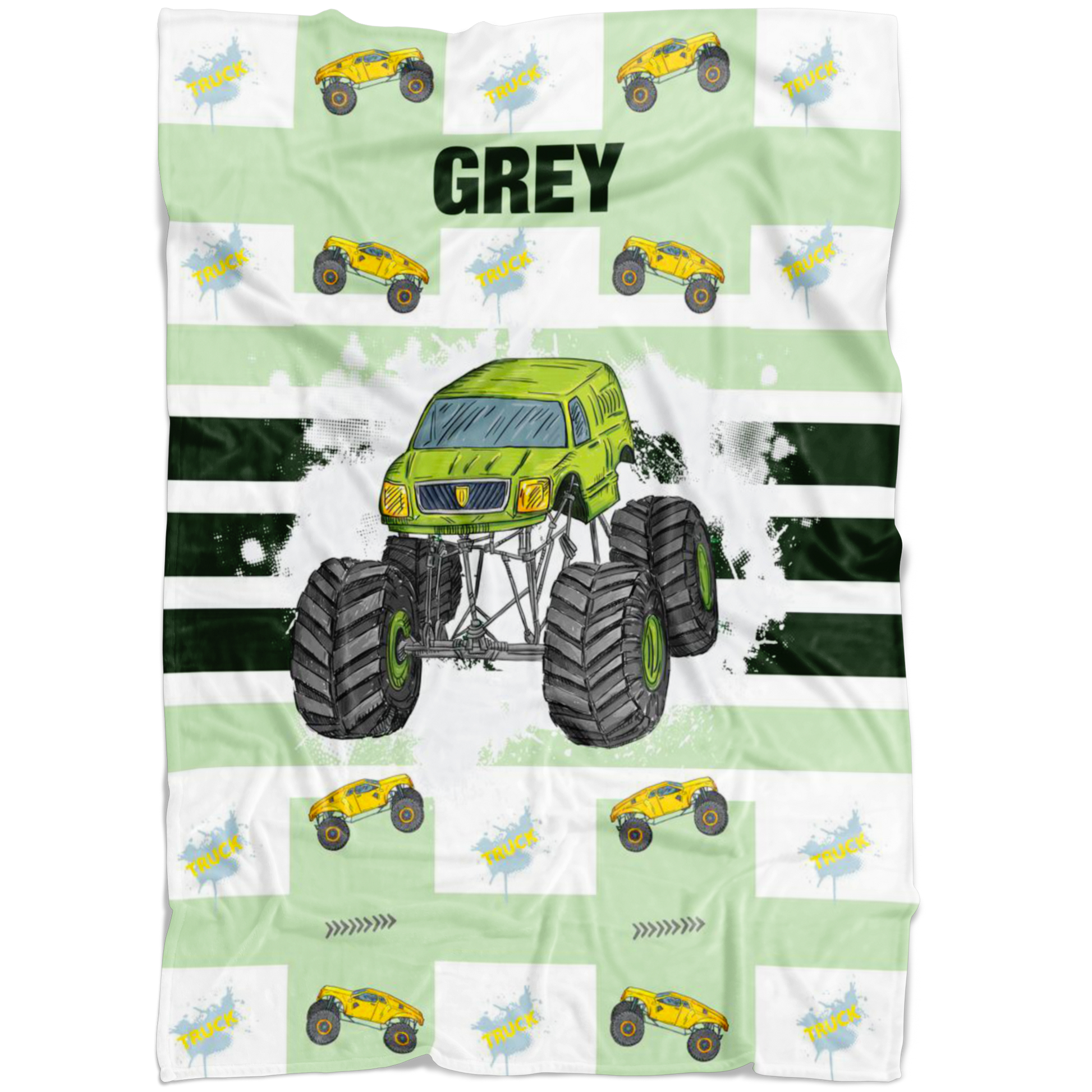 Personalized Name Monster Truck Blanket for Boys, Girls & Adults - GREY