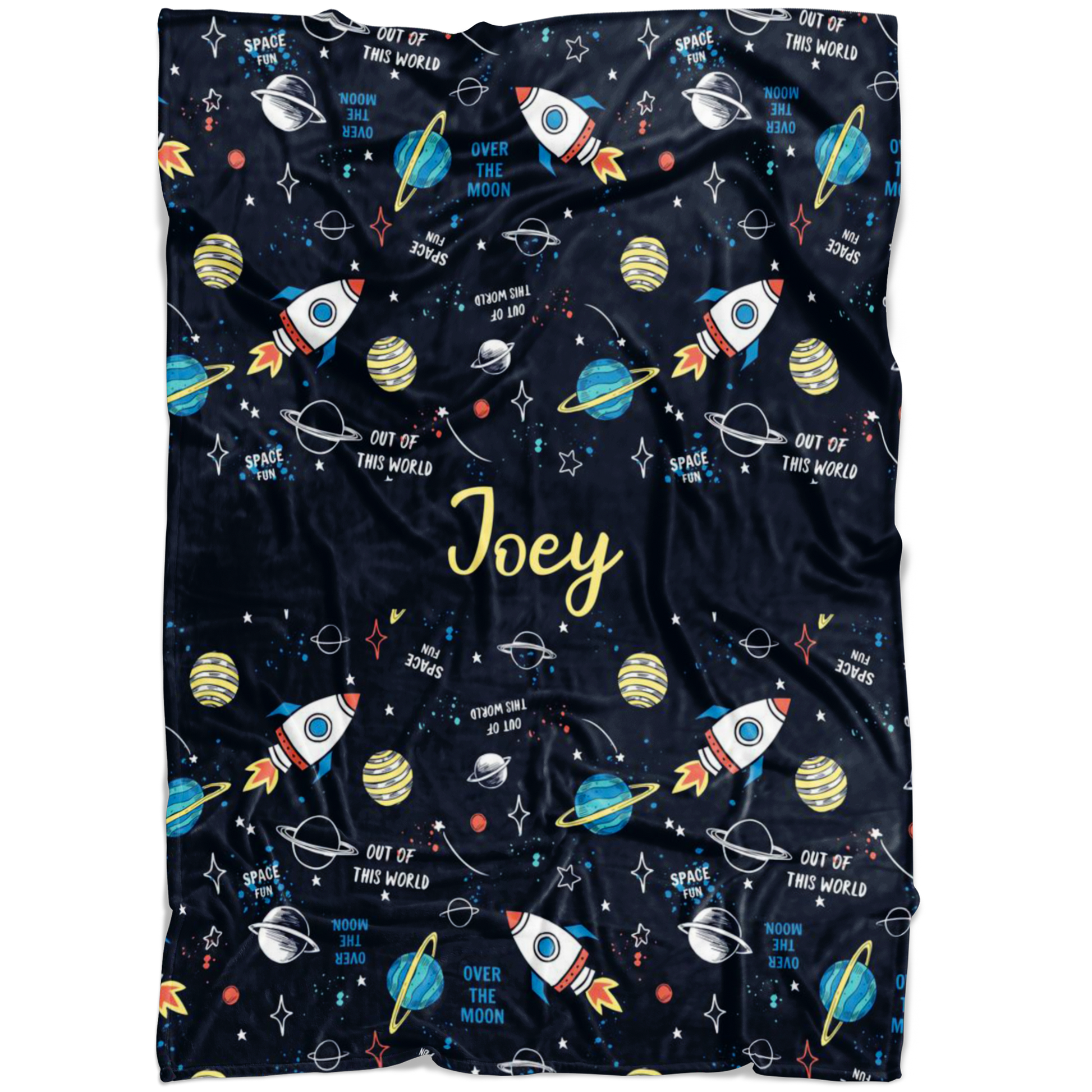 Personalized Name Space Blanket with Rockets & Planets for Boys & Girls - Joey