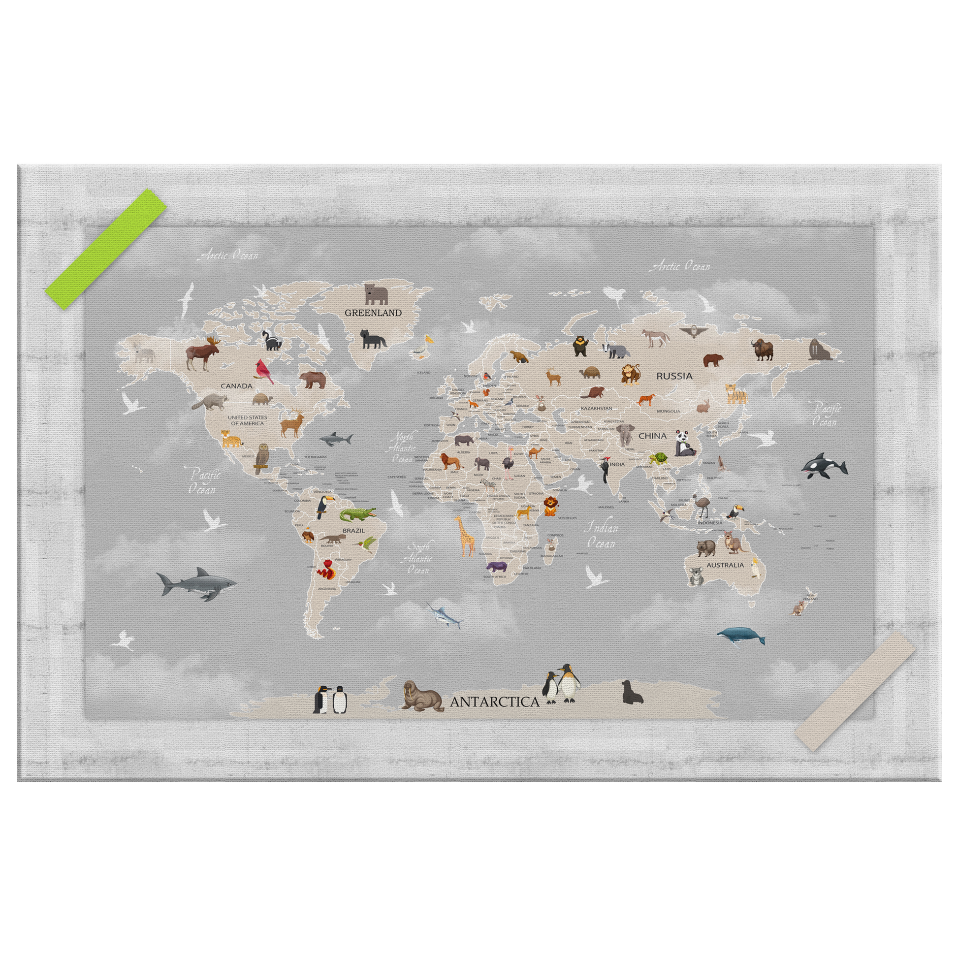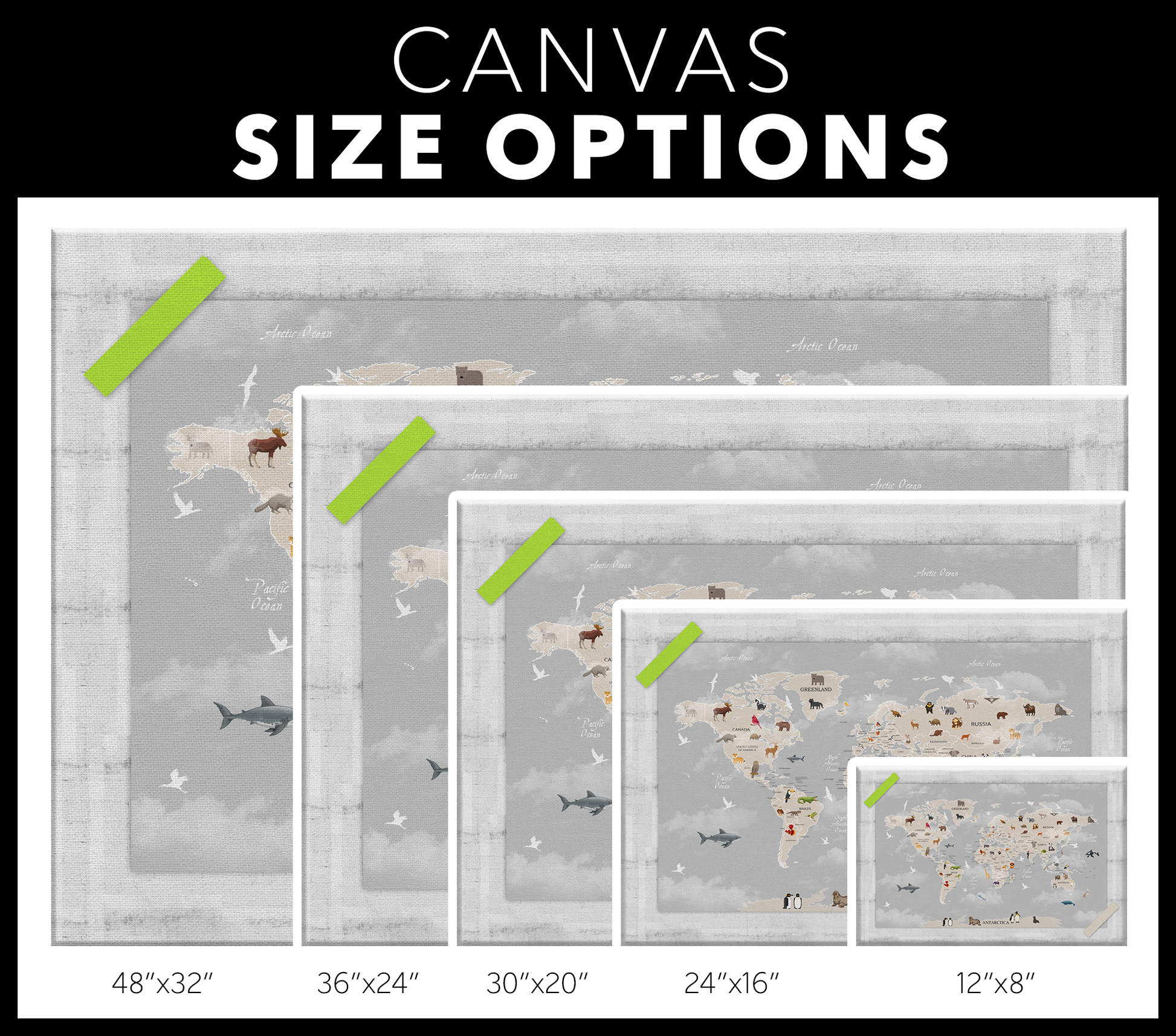 Personalized Map of World for Kids with Animals, Canvas Wall Art for Children's Room, Learning, Educational Map for Boys & Girls
