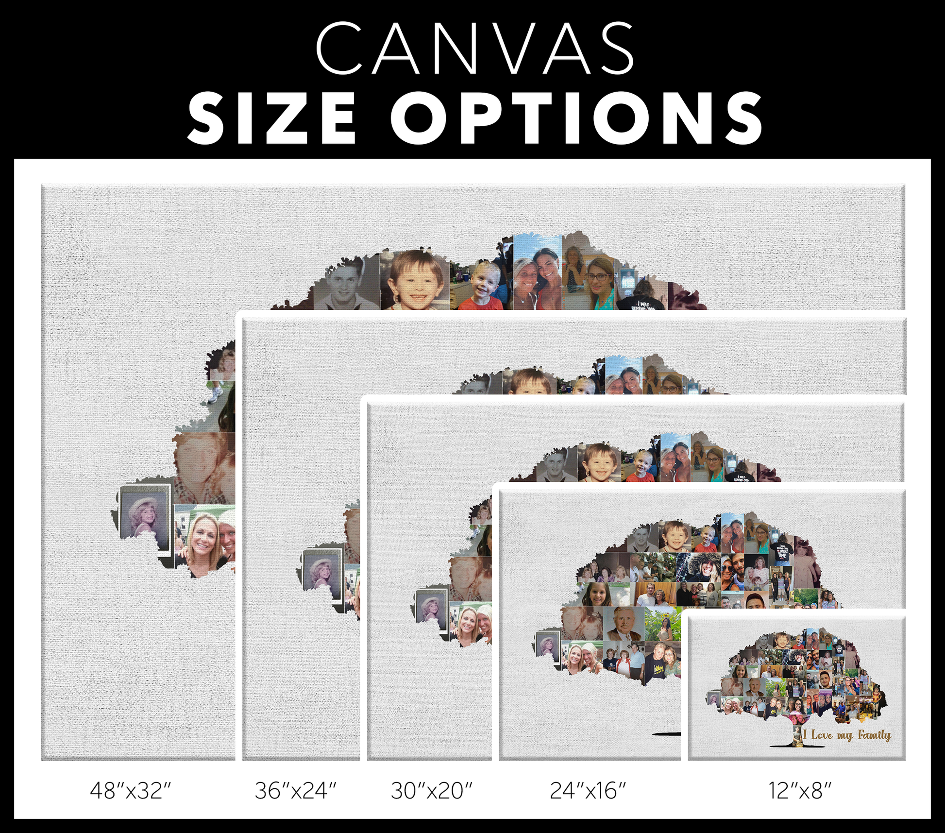 • Beveled Wood Stretch Bars - Make frame less noticeable on front of canvas.