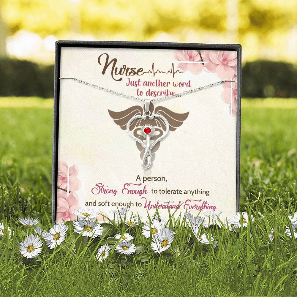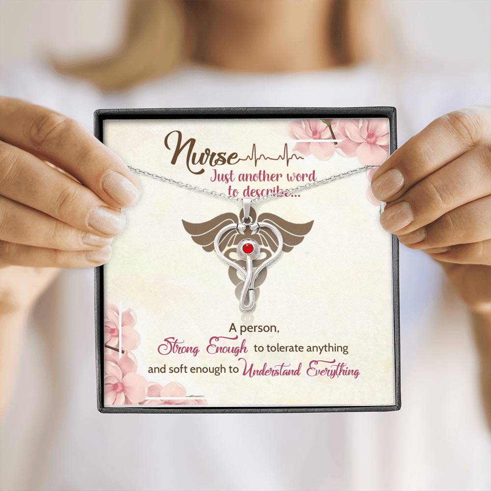 Our Health Care Workers dedicate their lives to our well being. They are the healers, the care-givers, and the life savers of the world. We can celebrate and recognize these heroes and their sacrifices with this beautiful stethoscope necklace. This piece makes a unique and thoughtful gift for nurses, doctors, and anybody in the medical field! Stainless Steel pendant with oxidized details Embellished with Red Swarovski® Crystal Pendant size 29.13mm x 20.47mm Adjustable 18"-22" Oblate Cable Chain with lobster clasp.