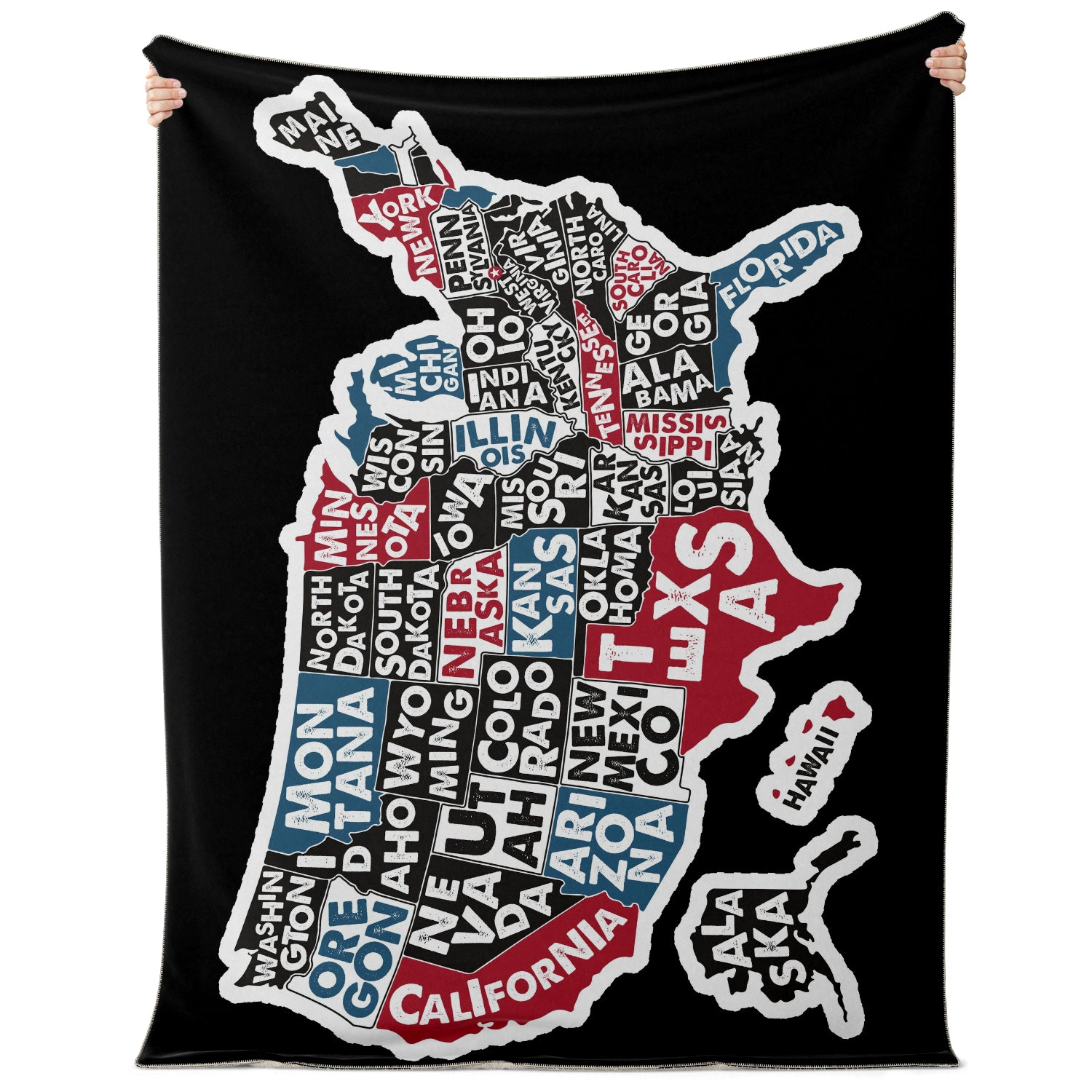 USA Map with State Names Premium Blanket